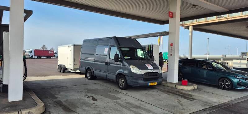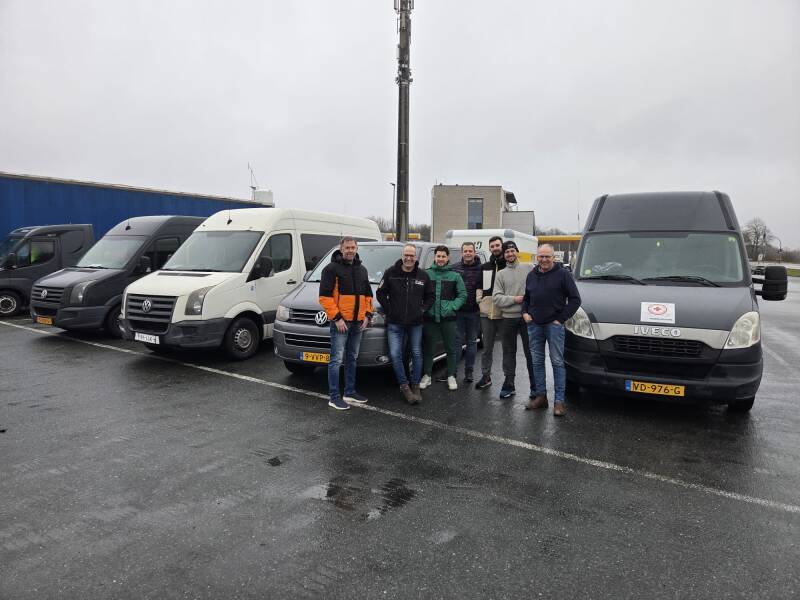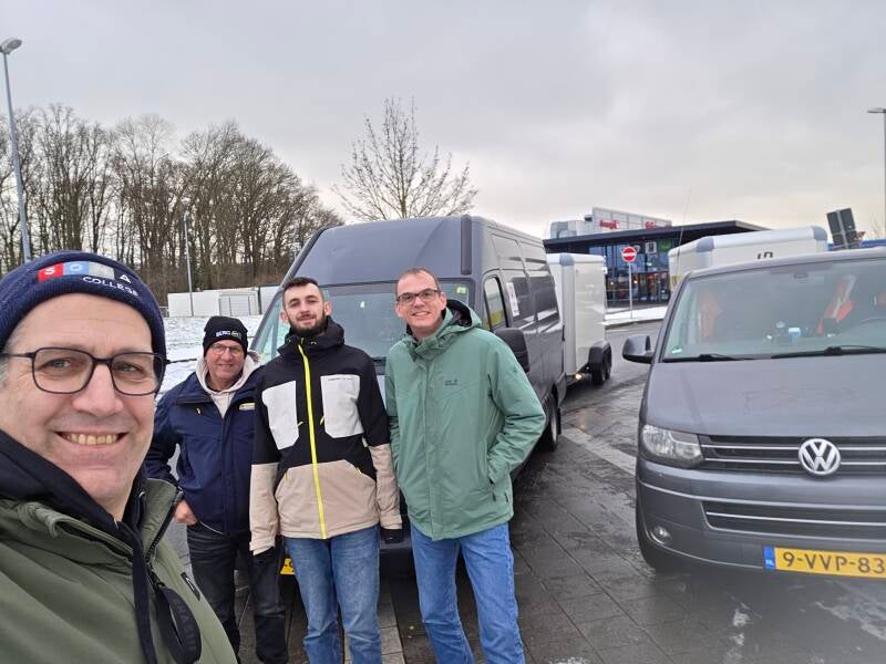 11-04-'25Onze eerste echte blog! en wat voor één. Woensdag zijn we de hele dag bezig geweest met sorteren en laden in Amsterdam, Leidschendam, Wassenaar en Elburg voor de verschillende adressen in Oekraïne. Na veel gesjouw, een hoop papierwerk en de nodige belletjes staat het konvooi klaar voor vertrek. Donderdagochtend rond 8 uur is de planning om te vertrekken. Na nog een half uurtje voorbereidingen gaan we dan echt op pad. Helaas begint er al snel wat pech op te spelen, Het vermogen van één van de auto's valt weg. Gelukkig bleek het maar een turboslang die was losgesprongen. Snel weer op weg dus. Tot een paar uur in Duitsland, opnieuw de turboslang, maar nu stonden we op de vluchtstrook waar de auto's dicht langs ons heen raasden. Nu was het wel meer werk. Een klem van de slang was naar beneden gevallen, en je raadt het vast, daar kon ik niet zo bij. Op mijn rug, onder de auto met op een paar meter razende auto's langs je heen. Een uurtje later, alles weer klaar, we kunnen weer! Op mysterieuze wijze is ook nog door beide auto's een paar keer verkeerd gereden. Weer vertraging! Op naar PolenTegen het donker worden bereiken we de grens met Polen. Nu bleek één van de aanhangers een storing in de verlichting te hebben. Na een poos zoeken bleek een kleine kortsluiting de oorzaak, weer een paar uur weg. Uiteindelijk met totaal 6 uur vertraging bereiken we, met inmiddels sneeuw en kou de grens met Oekraïne. Dit ging bijzonder snel, net binnen een uur alle stempels en documenten in orde. Vrijdagochtend, 8.30 Nederlandse tijd rijden we dan de grens over Oekraïne in. Op naar onze bestemmingen! Ook nu weer stevige sneeuwbuien en plekken met veel sneeuw. En dat in april.